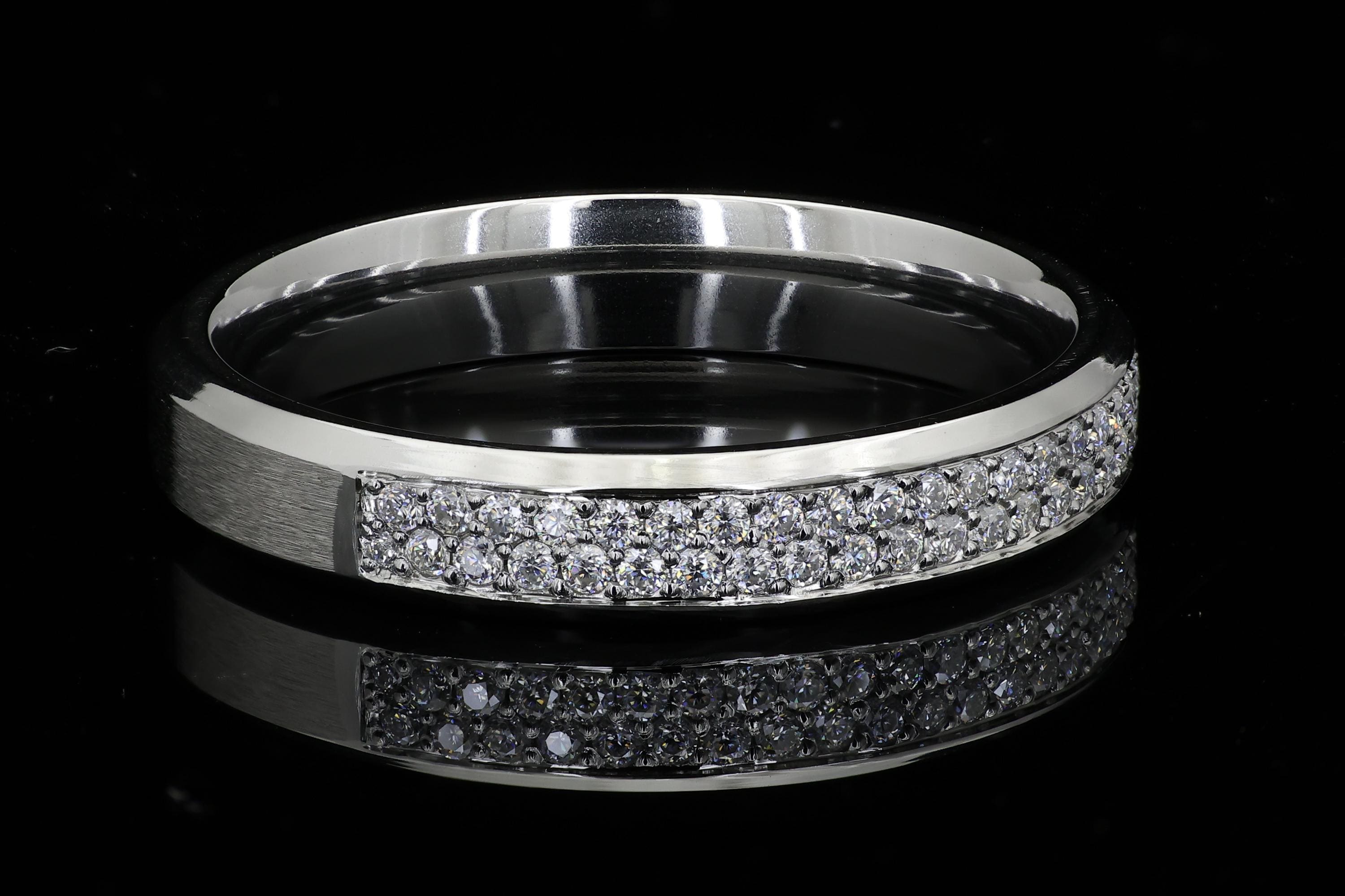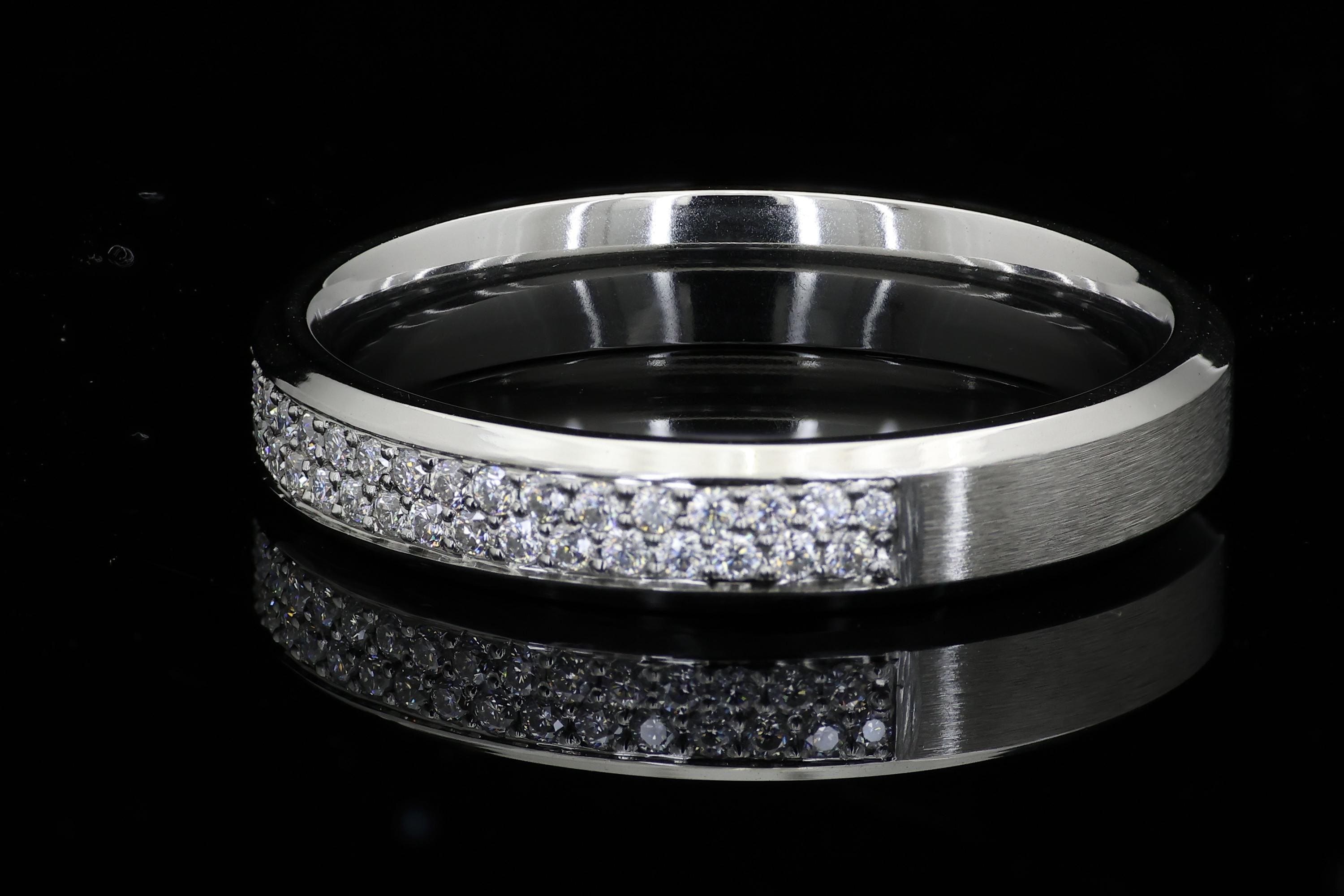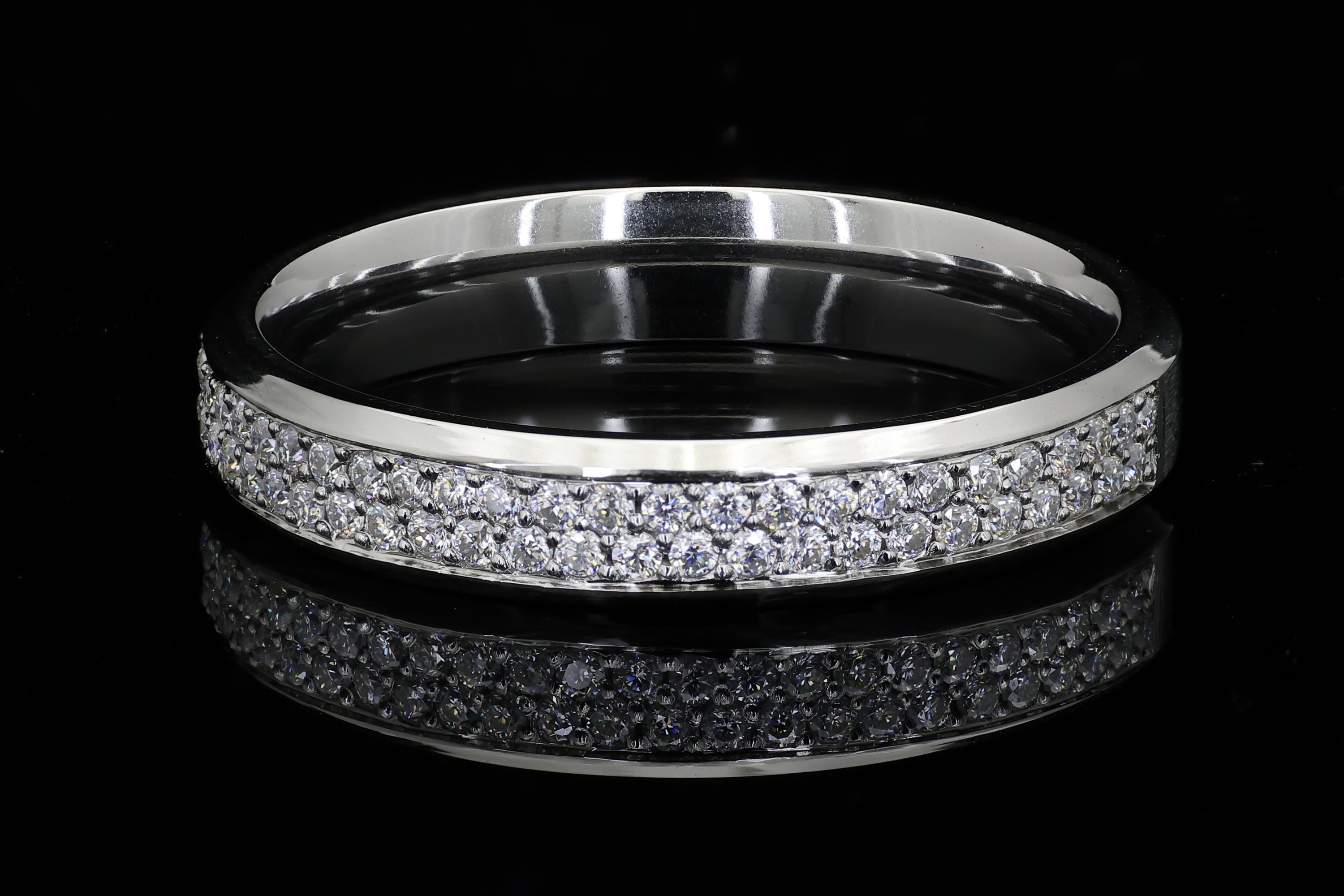 Sterling Silver Lab Diamond Round Double Row Wedding Band – Pave Eternity Ring, Unisex Promise Ring, Ethical Lab-Grown Diamond Jewelry